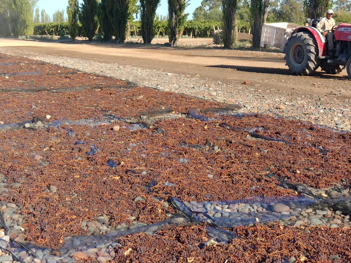 La uva se somete a deshidratación exponiéndola al sol directo o cámara de calor. En la provincia de San Juan, que registra la menor frecuencia de lluvias del país (menos de 100 mm/a) y por sus altas temperaturas, traducido en días soleados la mayor parte del año, este proceso sólo requiere 15 días.
